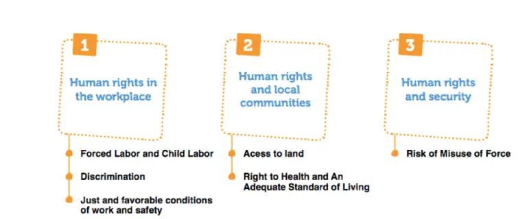 | Unilever | Makanan dan Minuman | Diskriminasi Upah yang adil Kerja paksa Kebebasan berserikat Gangguan Kesehatan dan keselamatan Hak atas tanah Jam kerja | ‘Enhancing Livelihoods, Advancing Human Rights’. Human Rights Report 2017 |