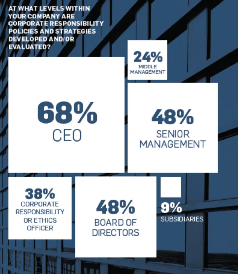 Berdasarkan UN Global Compact Progress Report 2018, manajemen senior adalah katalis utama dalam menggerakan kebijakan HAM. Ternyata, 68% kebijakan HAM dinisiasi, dikembangkan, dan dievaluasi oleh CEO, sebagaimana terlihat pada figur dibawah ini: