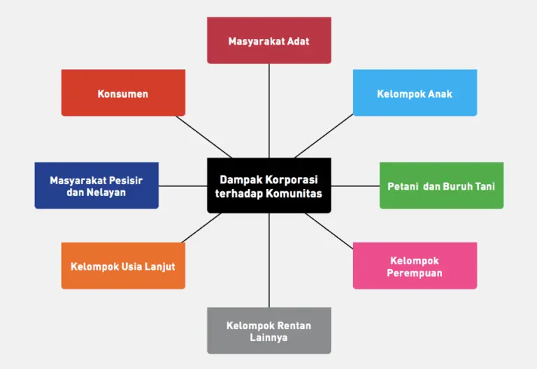 Kemudian peta dampak korporasi terhadap komunitas setempat dapat dilihat melalui diagram di bawah ini.