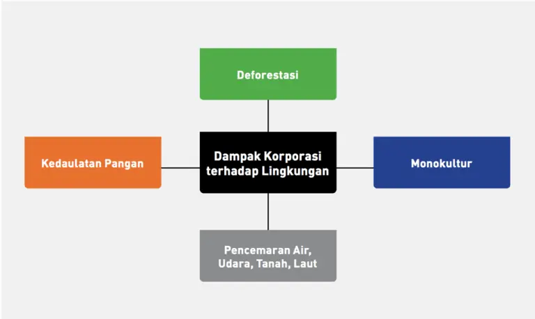 Sedangkan peta dampak korporasi terhadap lingkungan hidup dapat dipetakan melalui diagram di bawah ini.