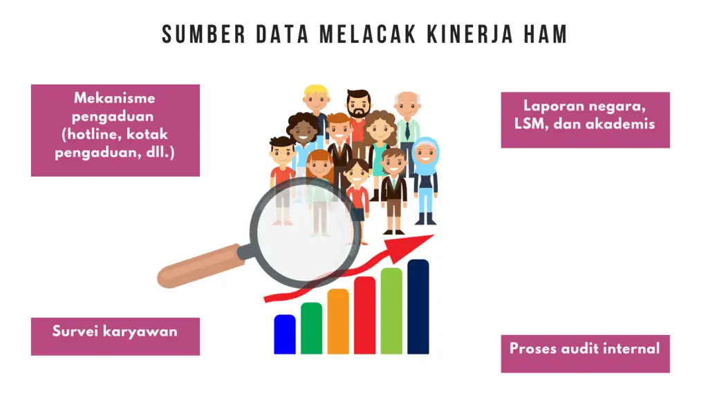 Internal audit/jaminan: Memantau kepatuhan terhadap kebijakan perusahaan, termasuk komitmen HAM, dan mengevaluasi efektivitas prosedur internal